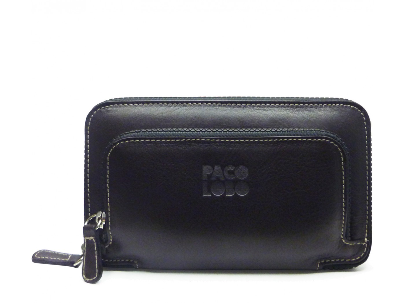 Monedero/billetero/tarjetero, con dos áreas independientes cerradas con cremallera, cuyos interiores se subdividen en varios apartados adaptados a diferentes usos. Hay dos tamaños, siendo este el mayor, un formato grande muy práctico y de gran capacidad. Se realiza en suave piel de vacuno en diversos colores