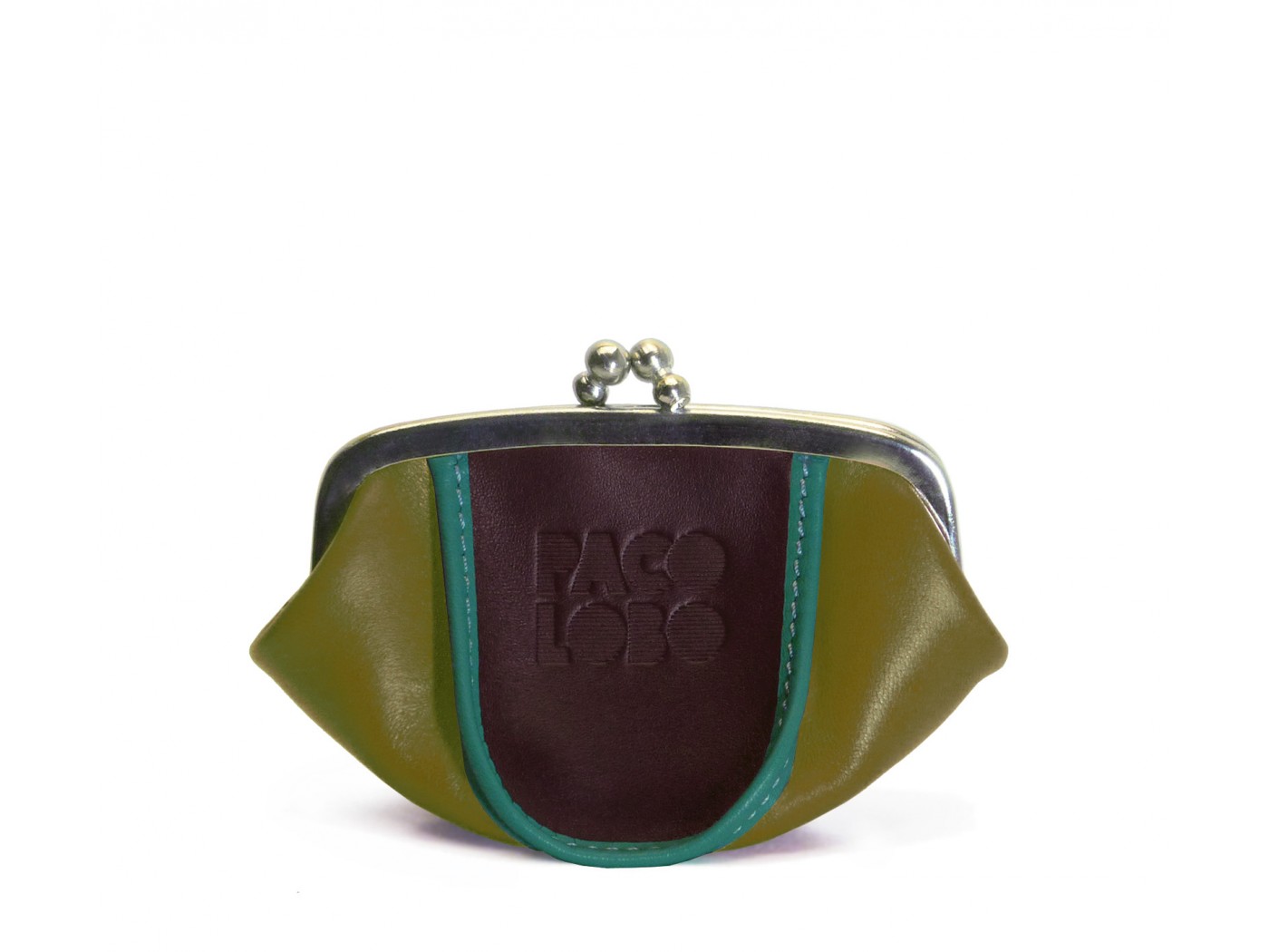 Monedero de gran capacidad con cierre de boquilla. Fabricado en suave piel de Napa, muy agradable al tacto. Disponible en diversas combinaciones tricolor.